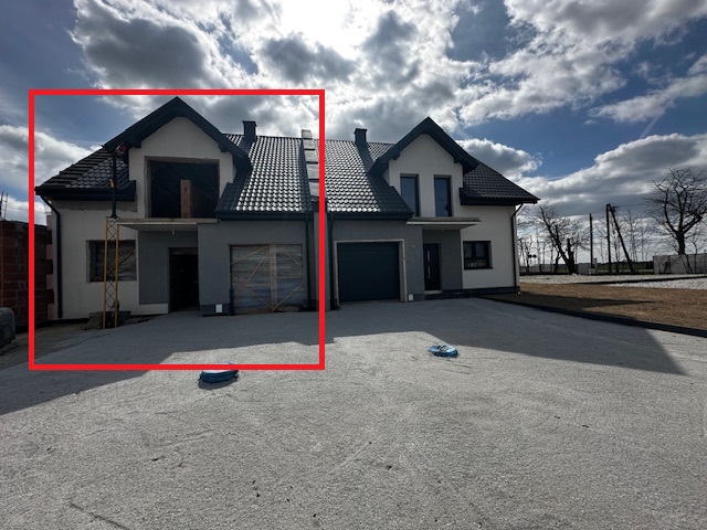 Dom sprzedawany w stanie deweloperskim zamkniętym. Nieruchomość składa się z następujących rzeczy.: - fundament-ławy lane + bloczek fundamentowy ocieplony - ściany-pustak Max grubości 25cm Cerpol, ocieplenie styropian gr 20cm lambda 0,040W/mK, siatka, klej -dach z drewna konstrukcyjnego, impregnowanego, deskowanie, papa łaty i kontrłaty, pokrycie blacho-dachówką. -kominy systemowe 2 sztuki jeden wraz z doprowadzeniem powietrza niezbędnym do podłączenia kominka, drugi do podłączenia pieca CO wraz z wentylacjami pomieszczeń. -wewnątrz: wylewka -chudziak-ocieplenie parter styropian 15cm piętro 8cm-instalacja ogrzewania podłogowego-wylewka pod płytki, instalacja elektryczna, tynki tradycyjne wygipsowane , strop Teriwa, poddasze wypełnione wełną mineralną grubości 15cm, od dołu membrana foliowa, przykręcone płyty karton gips -stolarka okienna PCV 3-szybowe Drutex Iglo Energy Clasic z kolorystyką białe od wewnątrz, antracyt na zewnątrz rolety zewnętrzne elektryczne w salonie żaluzja fasadowa pozioma. -media: prąd, wod-kan, gaz ziemny Powierzchnia użytkowa segmentu to 155m2. Oferta Promocyjna dotyczy domu środkowego na działce 2,5 ar . Cena Podstawowa: 530 000 zł , Do końca roku cena obniżona do ceny 510 000 zł - zapraszamy Układ pomieszczeń : Na parterze: Salon z aneksem kuchennym + łazienka + pokój+ przedpokój + garaż Na piętrze: 3 sypialnie, garderoba , duża łazienka , korytarz Ogrzewanie gazowe, przyłącze wody , kanalizacja , światłowód Zachęcam do oglądania i skorzystania z wyjątkowej okazji cenowej. Informacje o inwestycji: Piotr Cesarz tel. 600057799