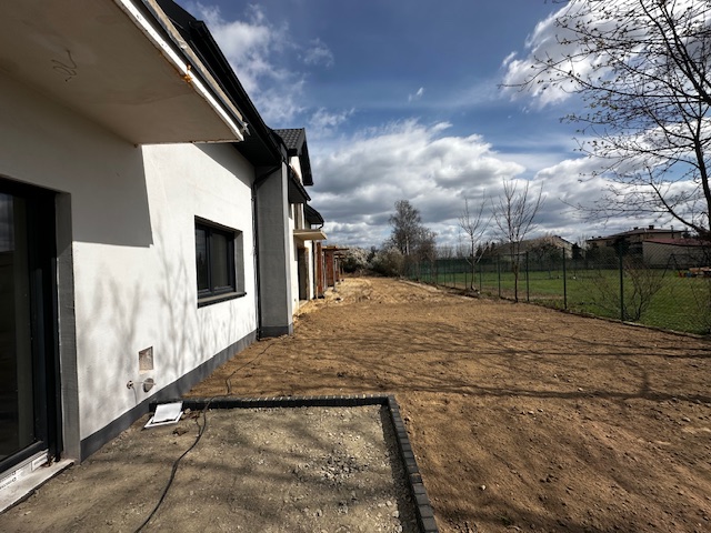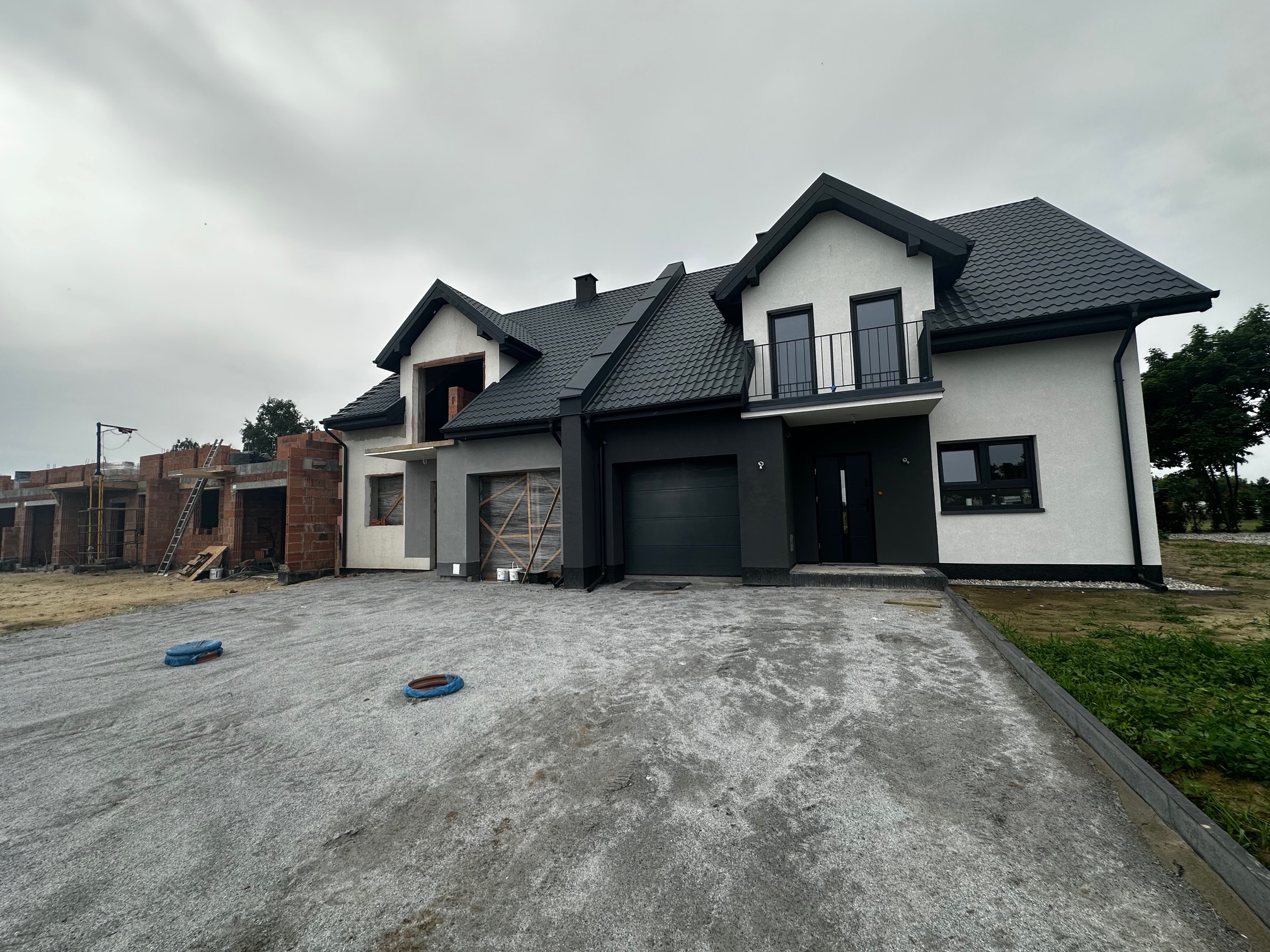 Dom sprzedawany w stanie deweloperskim zamkniętym. Nieruchomość składa się z następujących rzeczy.: - fundament-ławy lane + bloczek fundamentowy ocieplony - ściany-pustak Max grubości 25cm Cerpol, ocieplenie styropian gr 20cm lambda 0,040W/mK, siatka, klej -dach z drewna konstrukcyjnego, impregnowanego, deskowanie, papa łaty i kontrłaty, pokrycie blacho-dachówką. -kominy systemowe 2 sztuki jeden wraz z doprowadzeniem powietrza niezbędnym do podłączenia kominka, drugi do podłączenia pieca CO wraz z wentylacjami pomieszczeń. -wewnątrz: wylewka -chudziak-ocieplenie parter styropian 15cm piętro 8cm-instalacja ogrzewania podłogowego-wylewka pod płytki, instalacja elektryczna, tynki tradycyjne wygipsowane , strop Teriwa, poddasze wypełnione wełną mineralną grubości 15cm, od dołu membrana foliowa, przykręcone płyty karton gips -stolarka okienna PCV 3-szybowe Drutex Iglo Energy Clasic z kolorystyką białe od wewnątrz, antracyt na zewnątrz rolety zewnętrzne elektryczne w salonie żaluzja fasadowa pozioma. -media: prąd, wod-kan, gaz ziemny Powierzchnia użytkowa segmentu to 155m2. Oferta Promocyjna dotyczy domu środkowego na działce 2,5 ar . Cena Podstawowa: 530 000 zł , Do końca roku cena obniżona do ceny 510 000 zł - zapraszamy Układ pomieszczeń : Na parterze: Salon z aneksem kuchennym + łazienka + pokój+ przedpokój + garaż Na piętrze: 3 sypialnie, garderoba , duża łazienka , korytarz Ogrzewanie gazowe, przyłącze wody , kanalizacja , światłowód Zachęcam do oglądania i skorzystania z wyjątkowej okazji cenowej. Informacje o inwestycji: Piotr Cesarz tel. 600057799