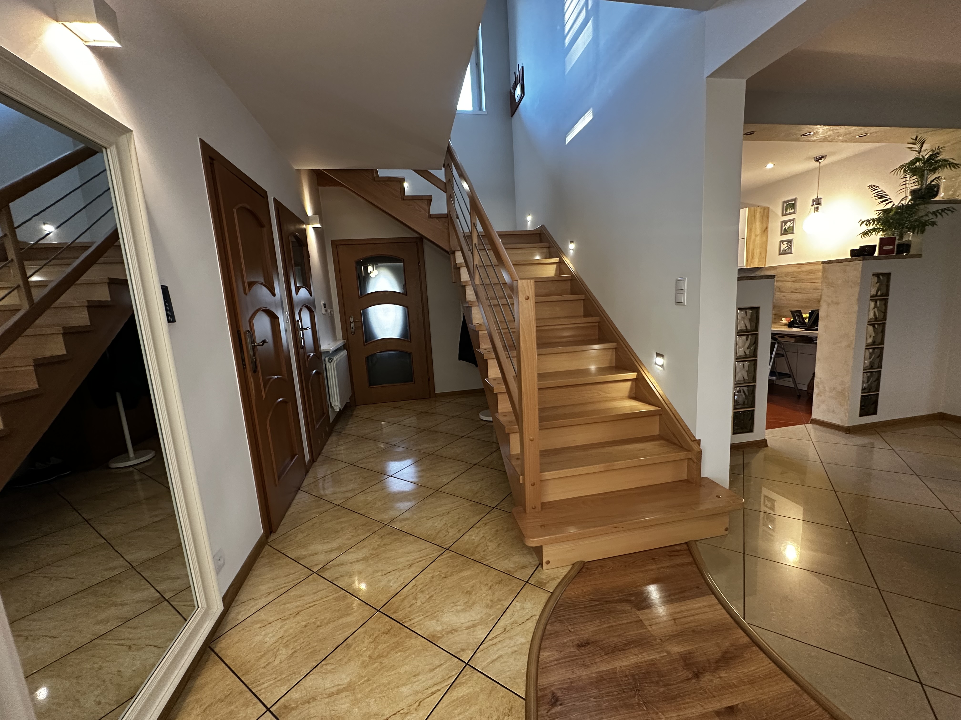 Na sprzedaż dom z 2015 roku wyposażony i gotowy do zamieszkania. Dom w wyjątkowej lokalizacji , posiada dostęp do własnego lasu , łąki , odległość do Rzeki Warta od własnej działki około 100m. W pobliżu tereny Parku Krajobrazowego , tereny turystyczne , ścieżki rowerowe . Czyste powietrze , spokojna okolica, lasy . W Toporowie znajduje się szkoła podstawowa, sklepy spożywcze, kościół. Komunikacja podmiejska, przystanki autobusowe. Odległość do: Wielunia 14 km , Działoszyn 13km , Częstochowa 50 km Lokalizacja : Toporów, gmina Wierzchlas, powiat wieluński, województwo łódzkie Dom w stanie bardzo dobrym , składający się: Na parterze: Wiatrołap: 2, 50 m2 Hall: 5,50 m2 Kuchnia: 12,30 m2 Jadalnia: 9,80 m2 Pokój: 10,20 m2 Salon: 26,30 m2 Kotłownia: 5, 30 m2 Łazienka: 5,40 m2 Garaż: 15, 80 m2 Klatka schodowa: 2, 80 m2 Piętro: Klatka schodowa: 2, 80m2 Hall: 14,30 m2 Pokój: 17,80m2 Pokój: 12,60m2 Pokój: 12,60m2 Dom posiada centralne ogrzewanie : piec na eko- groszek + dodatkowo kominek. Dojazd drogą asfaltową. Przyłącza : woda, prąd, światłowód, szambo ( kanalizacja w trakcie budowy ) Zachęcam do oglądania .